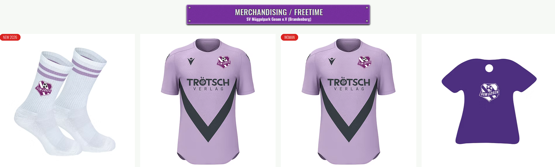 Von Trainingsjacken, über Socken, Sporttaschen, bis hin zu coolem Merchandise. In unserer stetig aktualisierten SVM Gosen e.V. Trainings-und Fan-Kollektion ist für jeden etwas dabei.